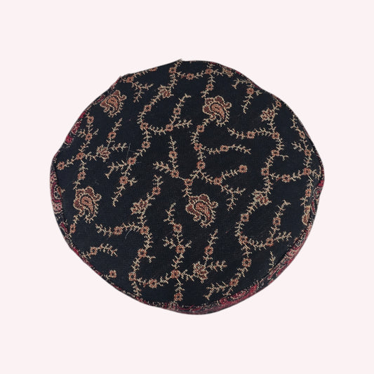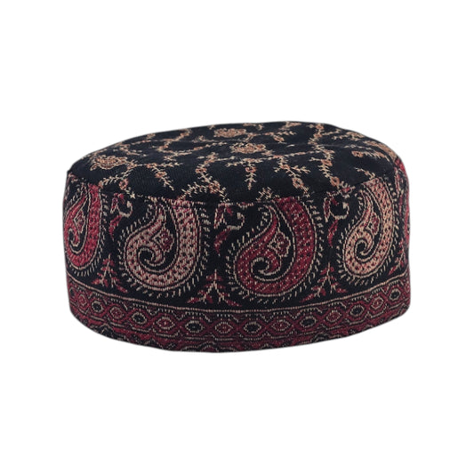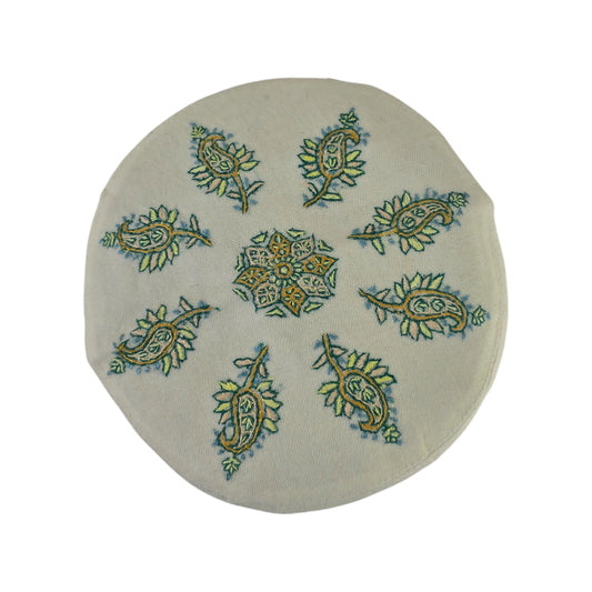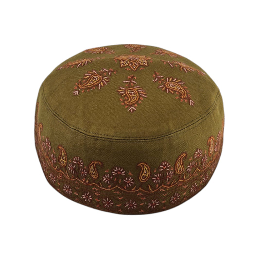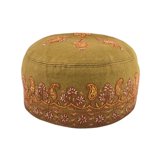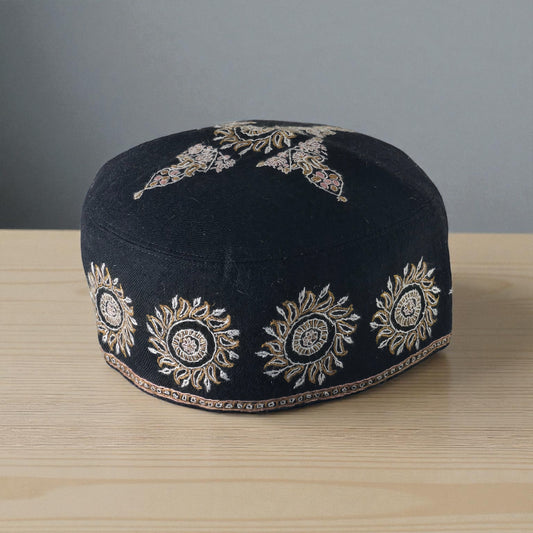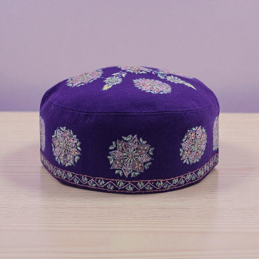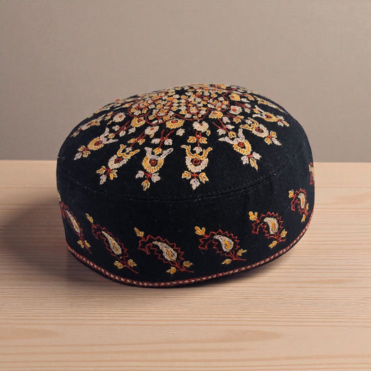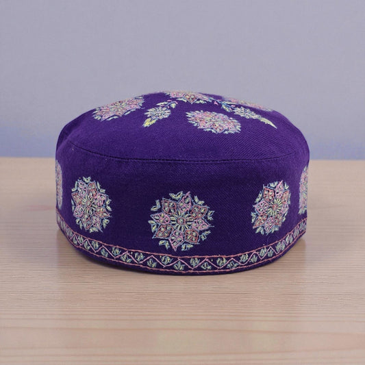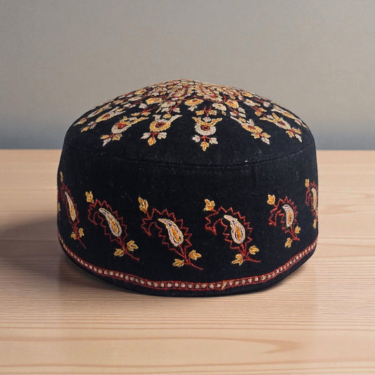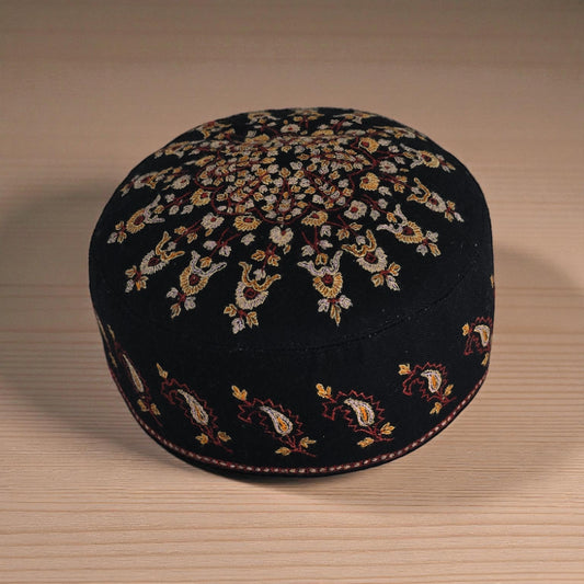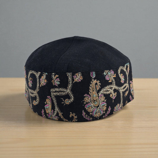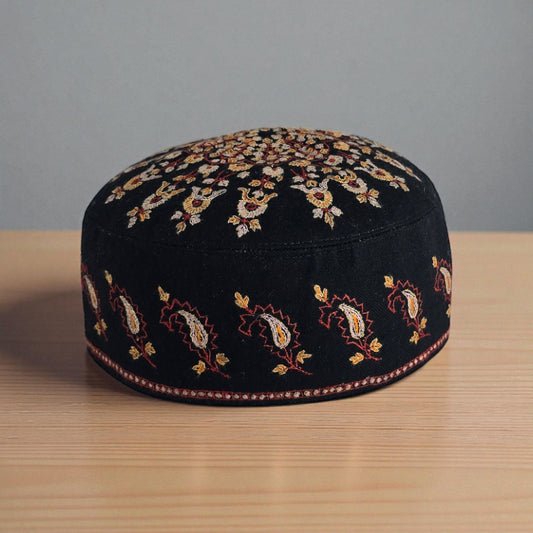 - Sozni Embroidery: Discover caps adorned with delicate and vibrant sozni embroidery, a traditional Kashmiri needlework technique that brings intricate floral and paisley patterns to life. Each stitch is a mark of painstaking effort and artistic vision.