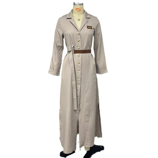 European And American Solid Color Polo Collar Breasted Lace-up Girdle Elegant Shirt Dress