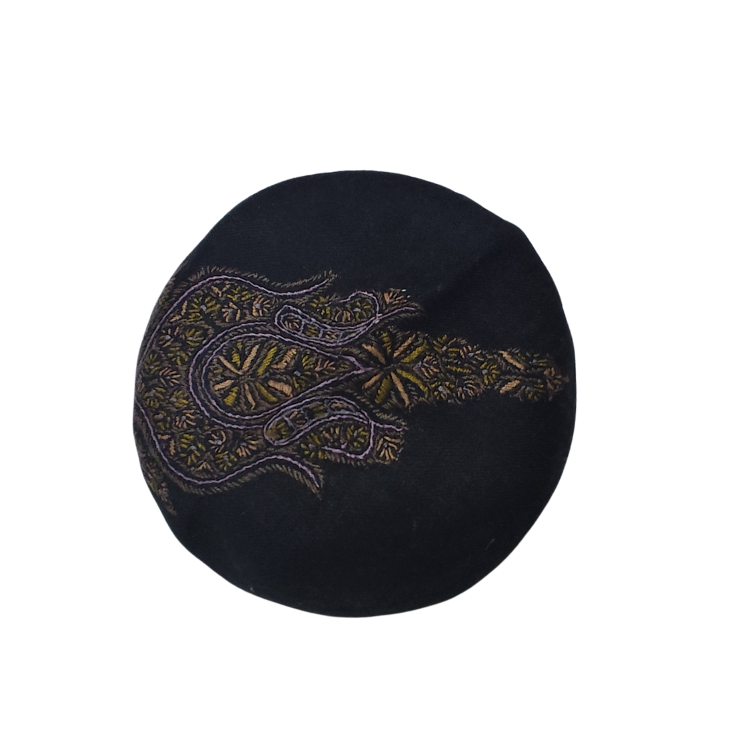 Sozni embroidery, a form of needlework, brings intricate designs to life while providing sustenance to families in Srinagar. Each cap is a symbol of Kashmiri culture, crafted with love and care. Our collection features unique, one-of-a-kind pieces, but we are happy to work with you to create a custom cap that matches your style. Explore our beautiful collection and elevate your everyday wear with Sozni Caps.