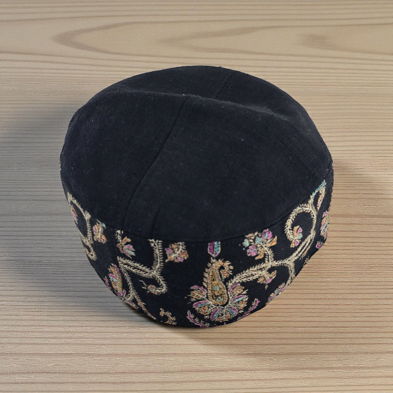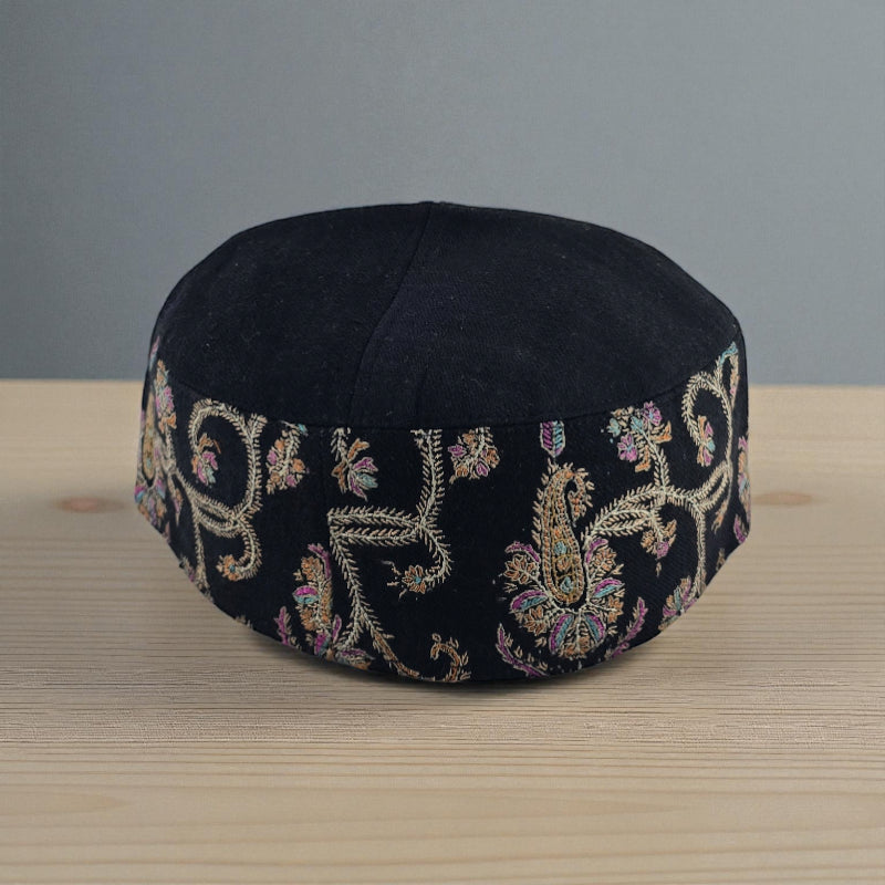 Why Choose the Premium Black Pashmina Wool Blend Cap with Intricate Floral Embroidery?